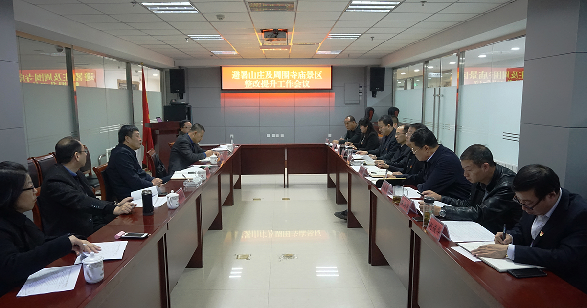 會上,市政府副市長崔萬峰同志聽取了市旅游和文化廣電局調(diào)研員李金龍同志就避暑山莊及周圍寺廟景區(qū)整改提升工作情況的介紹和市國控集團下屬智能停車場公司執(zhí)行董事胡杰同志就整體工作中涉及該公司管理的景區(qū)周邊停車場的整改提升工作進展情況的介紹。