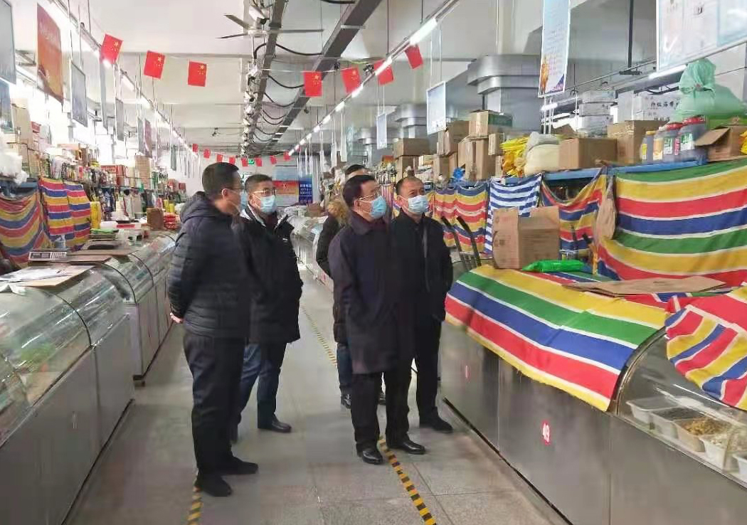 2月11日上午,集團(tuán)公司黨委書(shū)記、董事長(zhǎng)張建軍到裕華路市場(chǎng)看望慰問(wèn)一線職工,檢查節(jié)日重點(diǎn)單位疫情防控及春節(jié)市場(chǎng)供應(yīng)情況。