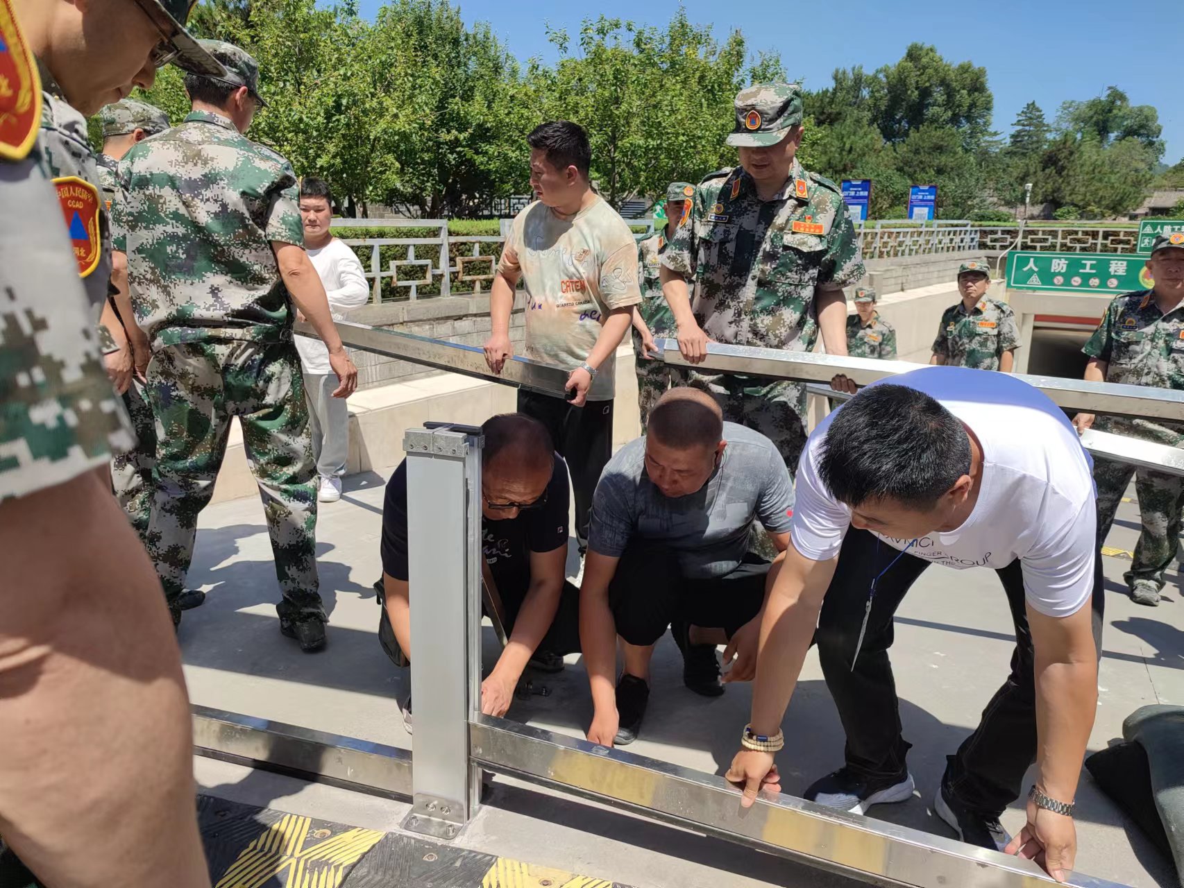 隨著現(xiàn)場指揮一聲令下,演練正式開始。停車場及人防辦工作人員把演練當做實戰(zhàn),按照演練前講解的防汛知識和注意事項,協(xié)調配合、分工明確,緊張有序地安裝擋水板,堆堵防汛沙袋。